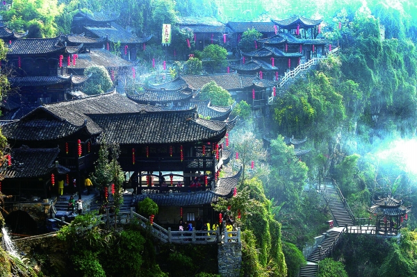 One of Furong’s most distinctive features is its impressive waterfall that flows through the town, creating a unique scene described as "the ancient town suspended above the waterfall." This natural phenomenon offers stunning views, particularly after heavy rains when the increased water flow creates a spectacular visual experience enjoyed by tourists and locals alike.